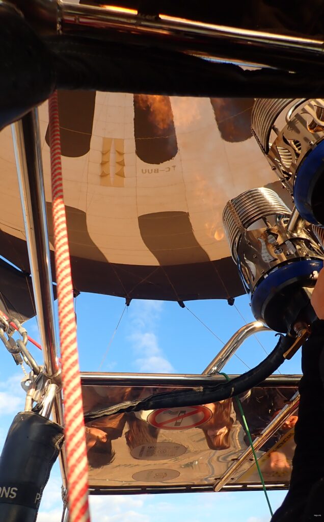 Całość trwa zwykle 3-4 godziny, więc należy uzbroić się w coś do picia i jedzenia i mieć w zanadrzu w plecaku. Zwykle balony napełniane są tuż przed lotem i trwa to dłuższy czas. Należy pamiętać, że w górze może być wietrznie i chłodno, więc ciepłe ciuchy i kurtka przeciwwiatrowa to mus. Najlepiej również ubrać się na sportowo i wygodnie – ja do swojego koszyka musiałam wskoczyć, nie chciałabym zgubić po drodze butów 🙂 Generalnie nie zaleca się ubierać sandałów czy klapek, a także ważna rzecz – apaszek i szalików, które mogą zostać wciągnięte przez urządzenia napełniające balon ciepłym powietrzem. Wszelkie “majtające się” elementy garderoby należy zabezpieczyć, a długie włosy powinny być związane.