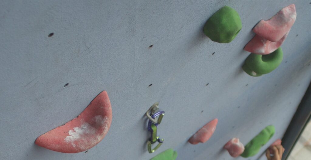 Chwyty – Jedne mniejsze, drugie większe, gładsze, szersze, węższe, prostsze i trudniejsze, rozmieszczone na całej wysokości ścianki wspinaczkowej. To one mają kreować nam tę fikcyjną skałę, na którą trzeba się wspiąć. Często wymagają od nas zastosowania różnych technik wspinaczkowych i razem ułożone są zwykle w drogę na ściance wspinaczkowej.