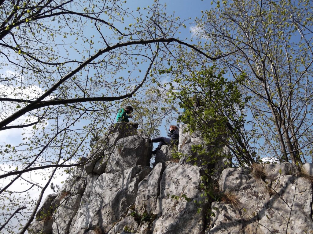 Będąc wciąż absolutnie beznadziejną na ściance i przekonaną, że będzie mi szło równie fatalnie w terenie, w końcu z grupą znajomych wybraliśmy się na Jurę Krakowsko – Częstochowską. Oferuje ona cały przekrój dróg, od łatwych do trudnych, praktycznie dla każdego. Nie spodziewałam się, że teren okaże się dla mnie prostszy niż ścianka wspinaczkowa. Fakt, który dla wielu osób jest trudnością – czyli to, że na skałkach nie ma wyodrębnionych chwytów (ale za to wszystkie chwyty są dozwolone), dla mnie okazał się ułatwieniem. Mój mózg zawsze kombinował po swojemu i tu, w skałkach, gdzie nic go nie ograniczało, puścił swoje wodze fantazji. Drogi, które robiłam zwykle z trudem i lękiem, tu pokonywałam dwa razy szybciej i miałam z tego ogromną frajdę! No i tarcie jest inne niż na śliskich chwytach na ściance wspinaczkowej. Wyjechałam ze skałek zadowolona i spełniona, a teraz chcę i wam przekazać tę wiedzę – tam na zewnątrz wspinanie jest zupełnie innym doświadczeniem– czy jesteście w tym dobrzy czy beznadziejni, po prostu spróbujcie. Może tak jak ja zdziwicie się jak dobrze poczujecie się na kawałku prawdziwej skały zamiast bezpiecznej, zakrytej, wspinaczkowej przystani.