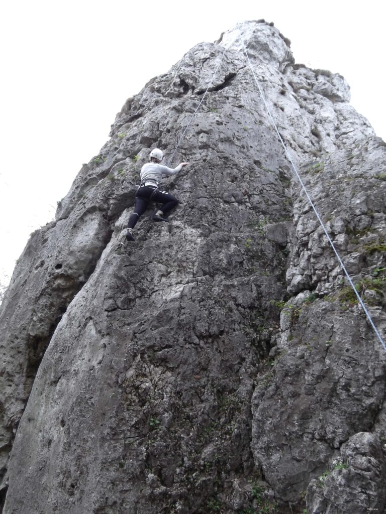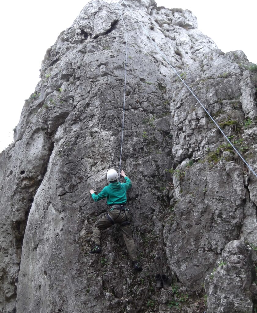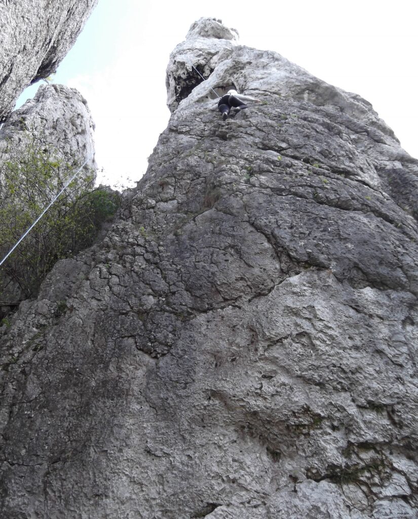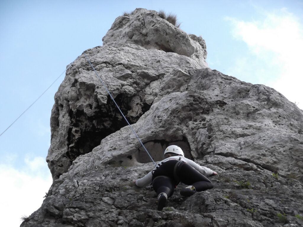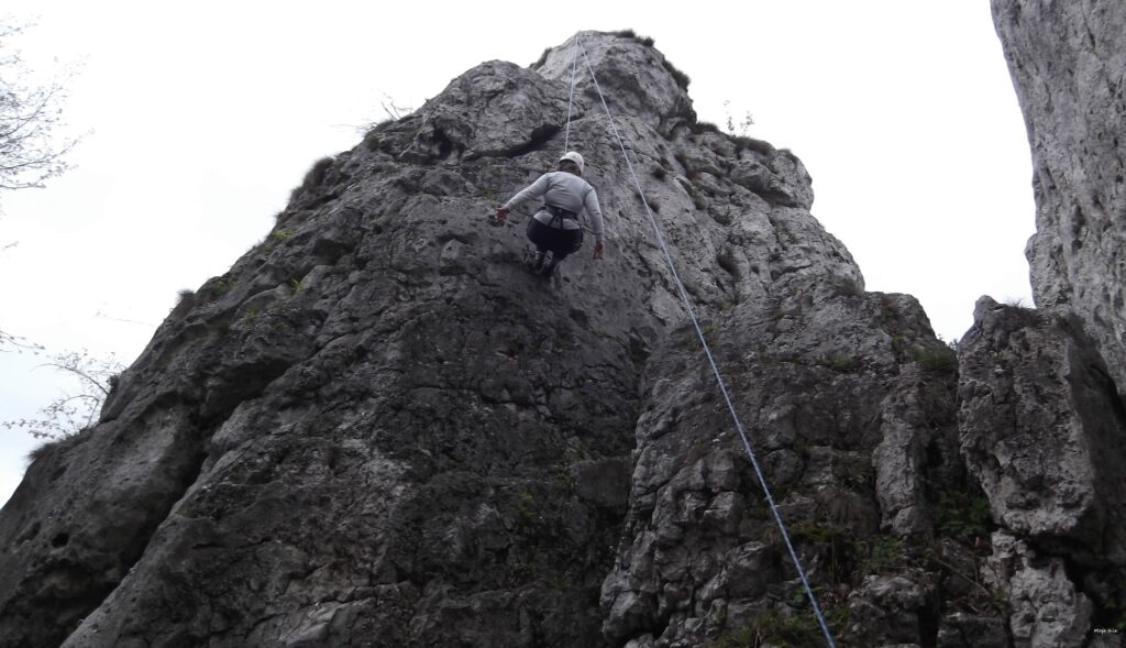 Musimy pamiętać, że podczas wspinaczki skałkowej jest znacznie więcej możliwości, by coś „poszło nie tak”. Odłamki skał, niewprawna asekuracja, grząskie podłoże, stare ringi i spity, niepewne chwyty… tu naprawdę może zdarzyć się wszystko i trzeba mieć tego pełną świadomość. Tu takie rzeczy jak zbuchtowana (niepoplątana) lina, wiatr, deszcz – mogą być czynnikami decydującymi o tym, czy bezpiecznie zejdziemy na dół. Dlatego bardzo zachęcam was do korzystania z kursów skałkowych i doświadczenia innych wspinaczy!
