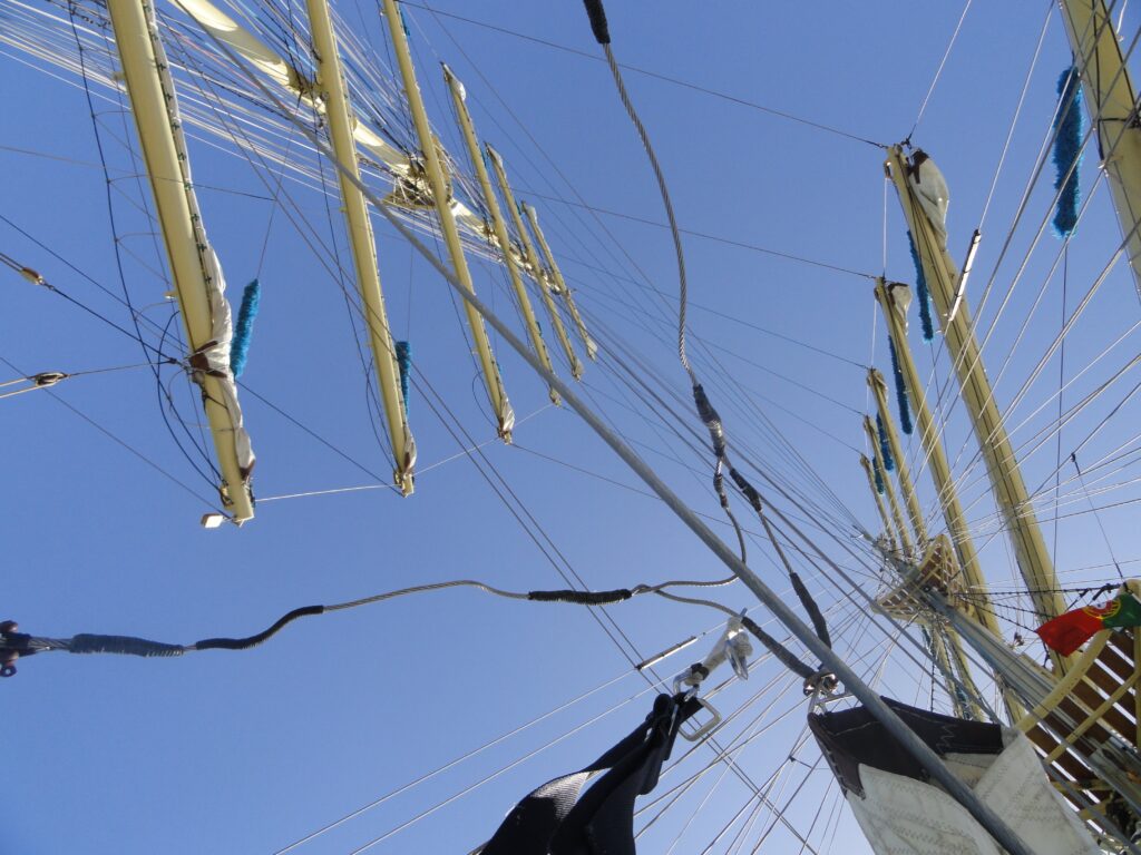 Jednym z najfajniejszych zajęć na żaglowcu jest wchodzenie na reje, czyli poprzeczne do masztu belki kryjące w środku żagle. Oczywiście mniej fajnie robi się, gdy trzeba na nie wchodzić w słabą pogodę i raz za razem, ale chyba dla każdego wejście chociaż raz na maszt jest niezapomnianym przeżyciem.
